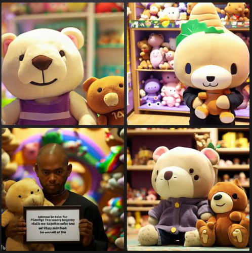 まずは「おもちゃ屋にいる太郎とテディベア」の絵をリクエストします。