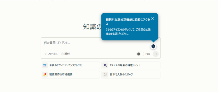 再度開きなおすとDeepLの拡張機能導入前ではなかったボタンが表示されるようになります。