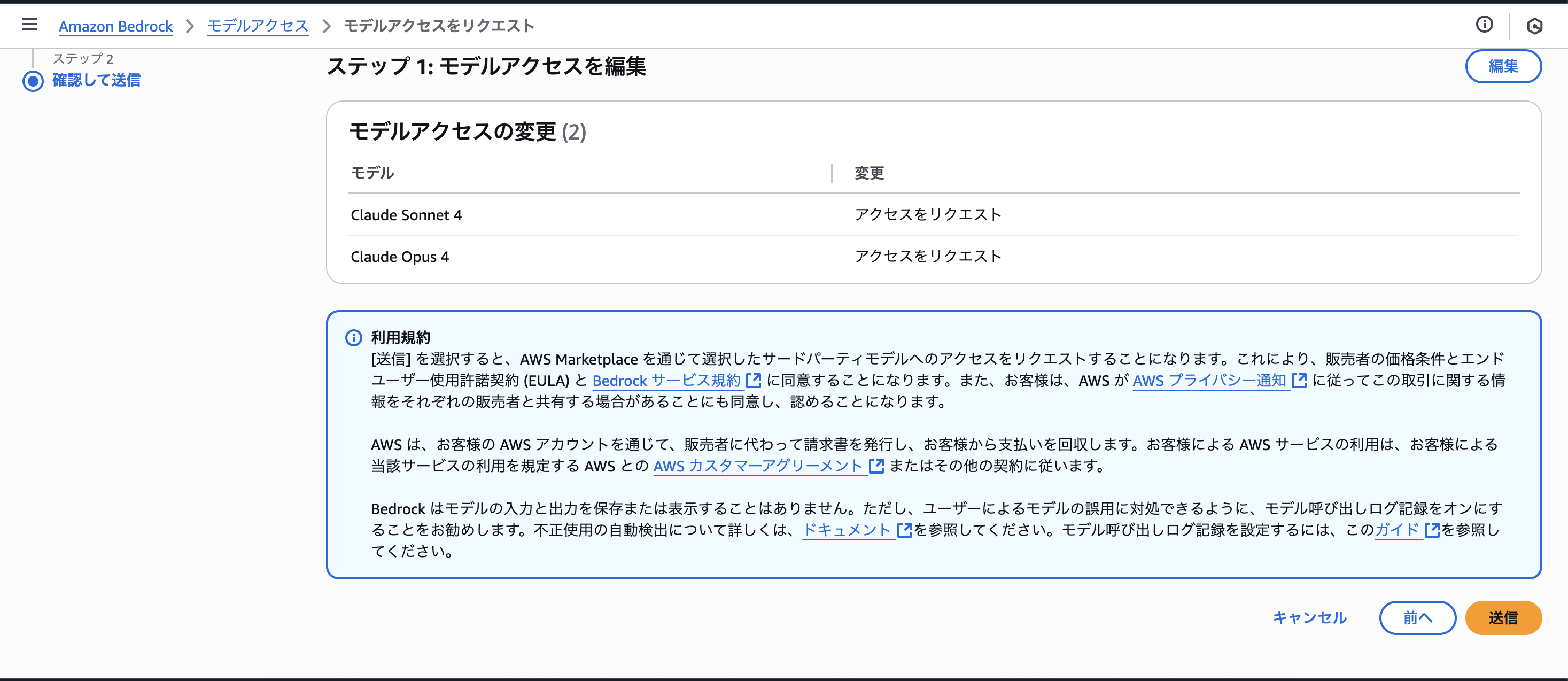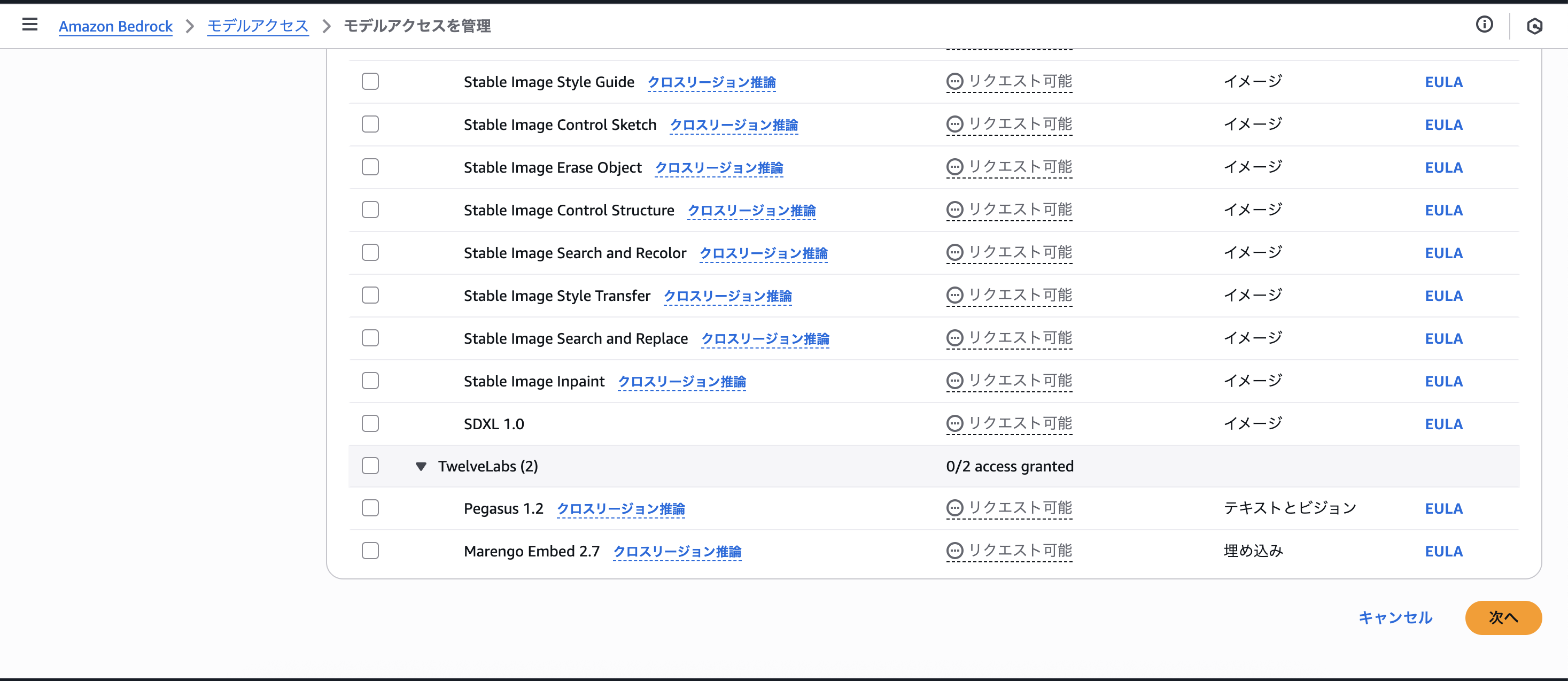 1.Amazon Bedrock > モデルアクセス > 「特定のモデルを有効にする」ボタンを押下