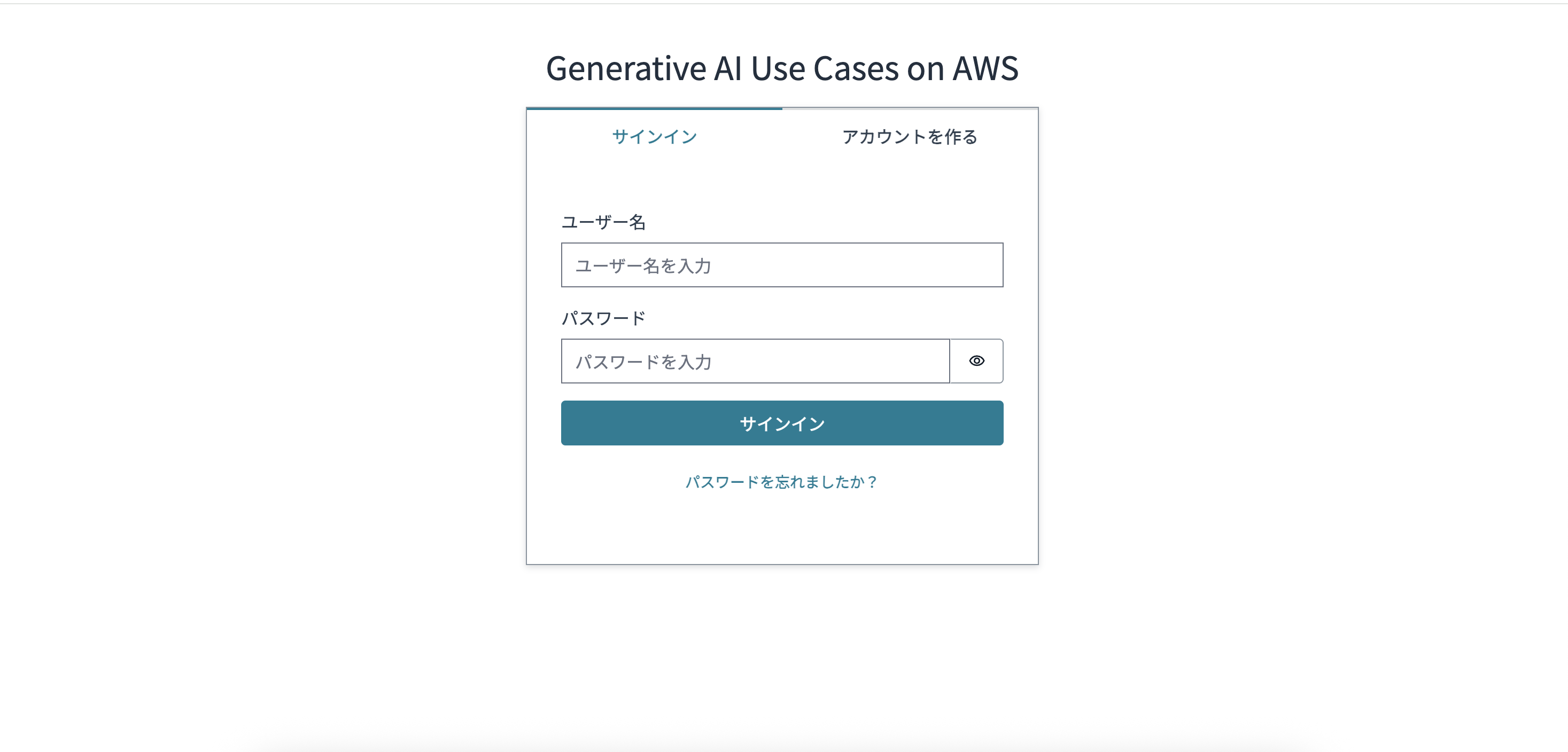 デプロイの出力にGenerativeAiUseCasesStack.WebUrl = https://*************.cloudfront.net