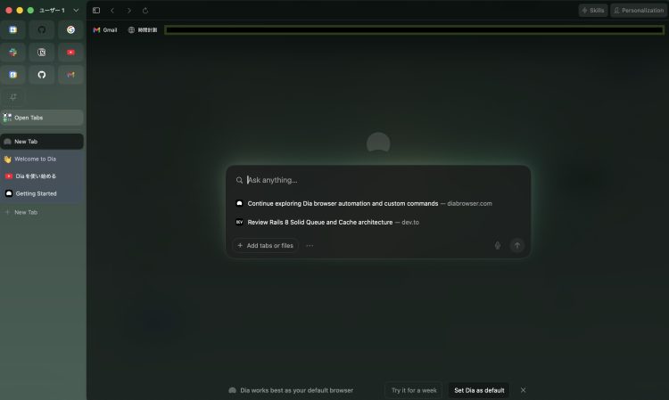 **AI搭載ブラウザ「Dia」**をメインブラウザとして使い始めました。