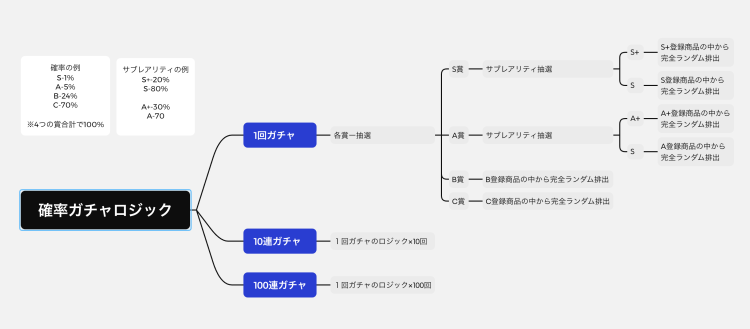 - こちらはここまでの確率系のガチャとは異なるロジックなので以下にロジック図を添付します。