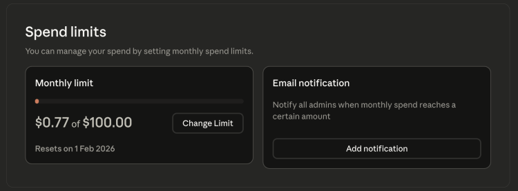 設定手順②:月額上限(Spend Limit)を設定