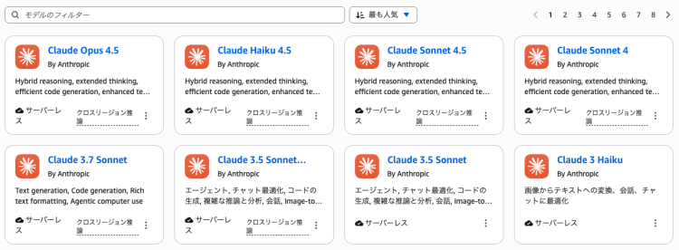 export AWS_REGION=us-east-1ClaudeがBedrockに提供するデフォルトのプライマリモデルは global.anthropic.claude-sonnet-4-5-20250929-v1:0、小型/高速モデルは us.anthropic.claude-haiku-4-5-20251001-v1:0 です。(2026年1月時点)