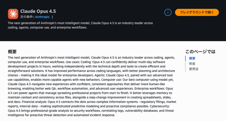 以前はモデルアクセス許可が必要でしたが、モデルに対してリクエストを行うと自動で許可されるように変わりました。いずれかのモデルでプレイグラウンドを開いてチャットするとモデルアクセスが自動的に許可されるようです