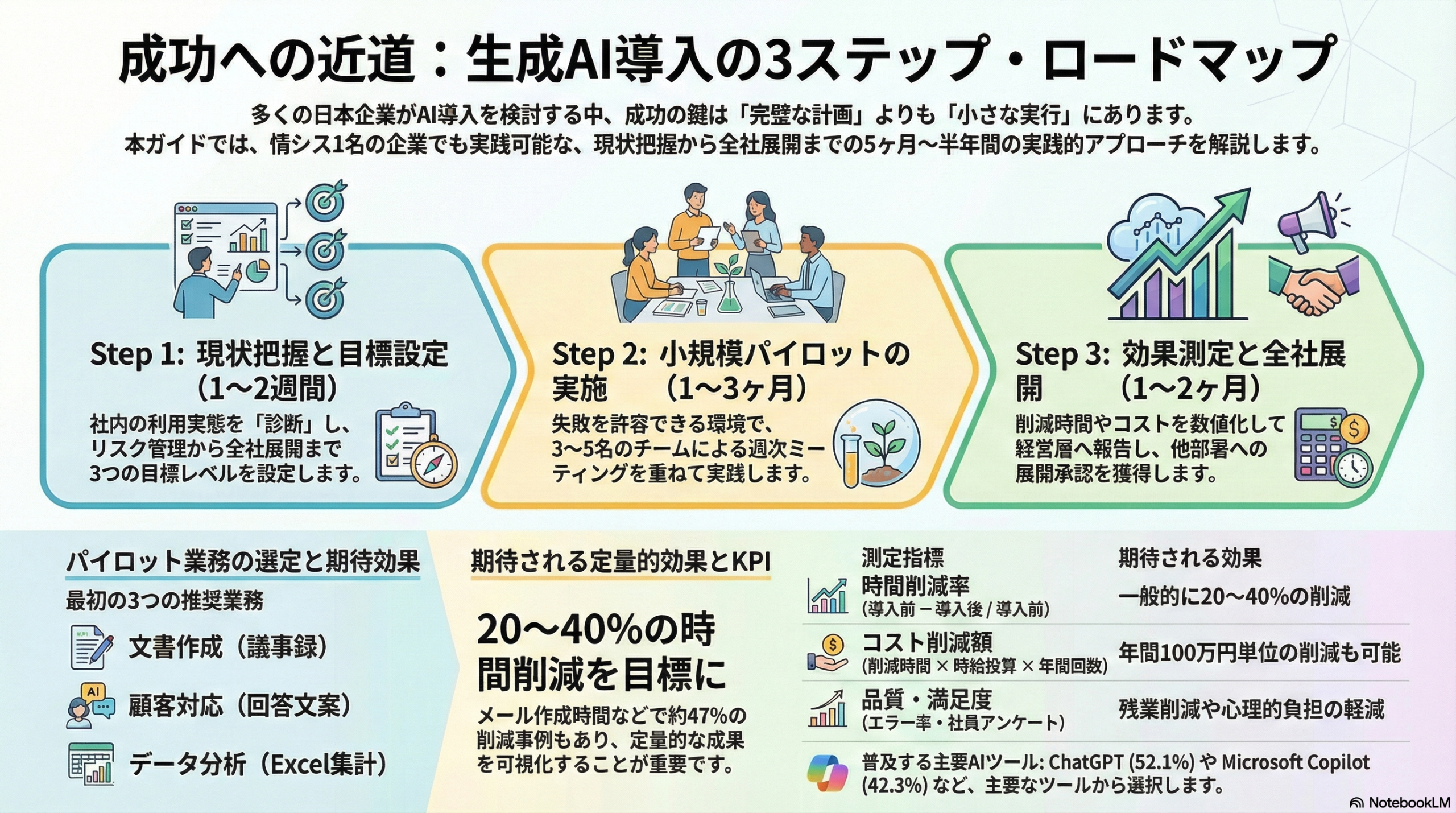 - Step 3: 効果測定と全社展開の計画(1〜2ヶ月)