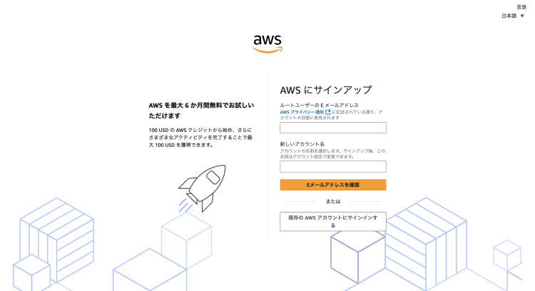AWSの無料利用枠を利用するには、AWSのアカウントが必要です。