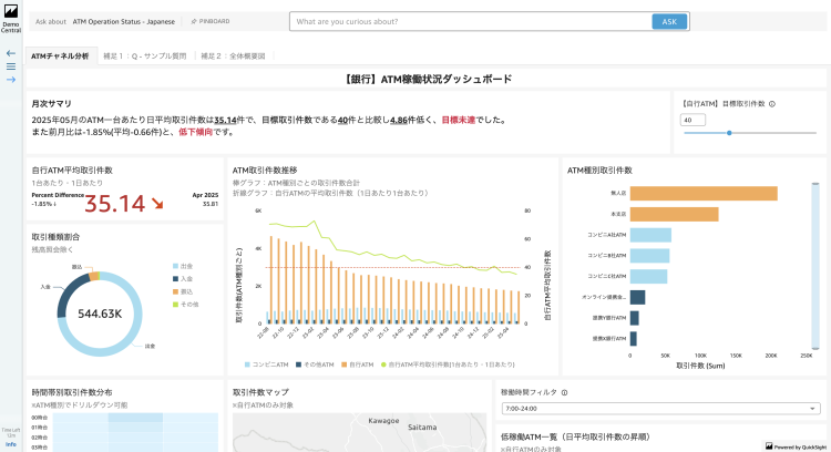 AmazonのクラウドサービスAWSにはQuickSightというサービスがあります。手早くBIを理解するためにBIダッシュボードのデモを閲覧できるAWS公式のDemoCentralも見てみてください。